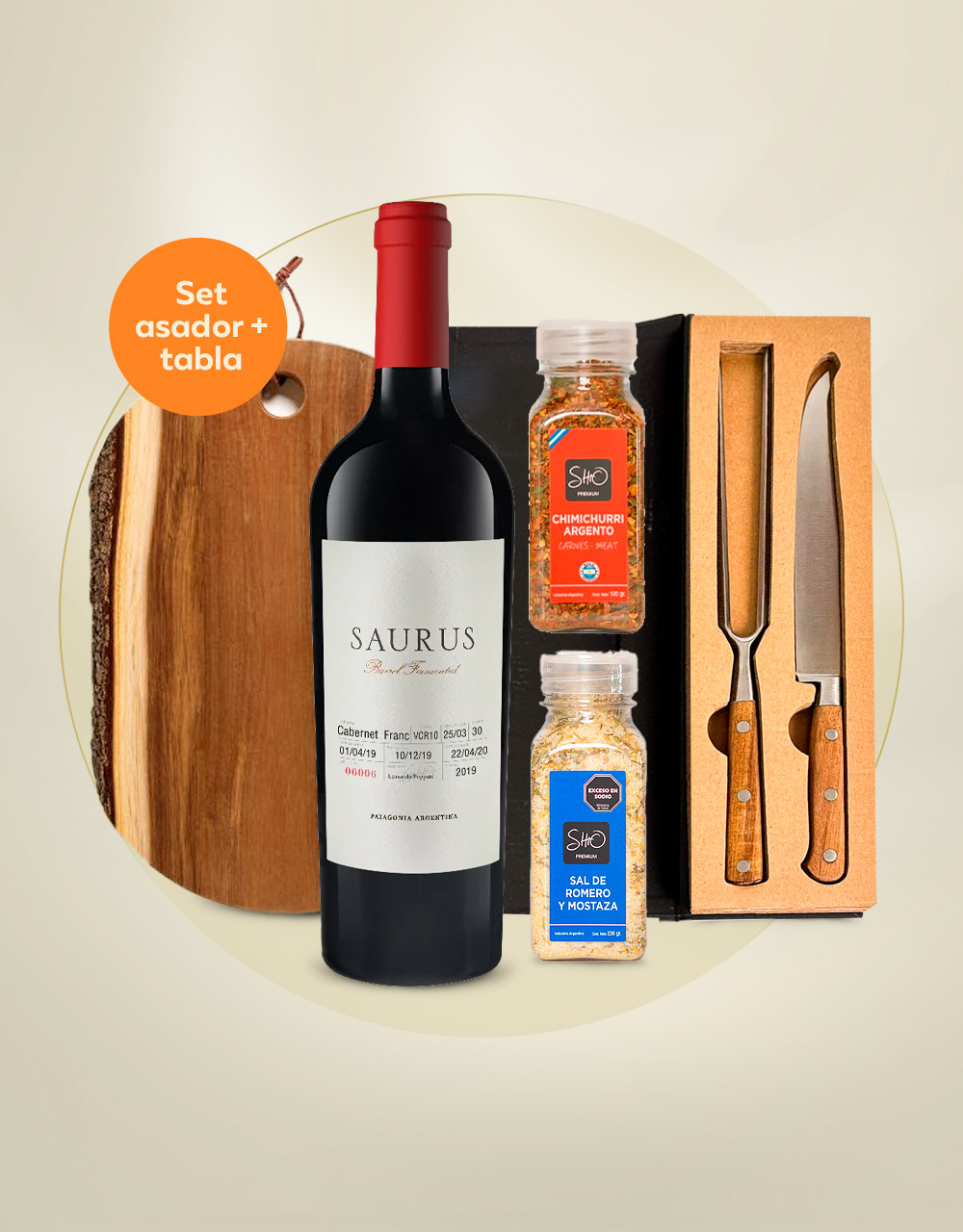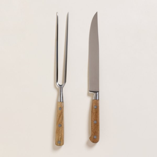 1 Set Asado Acero Y Acacia