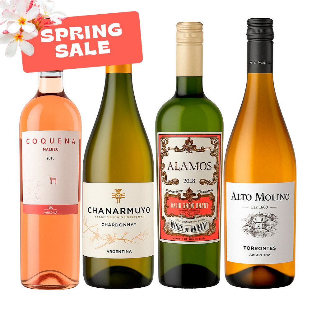 El combo trae distintos varietas entre blancos y rosados, de distintas regiones (Salta-Mendoza-La Rioja)