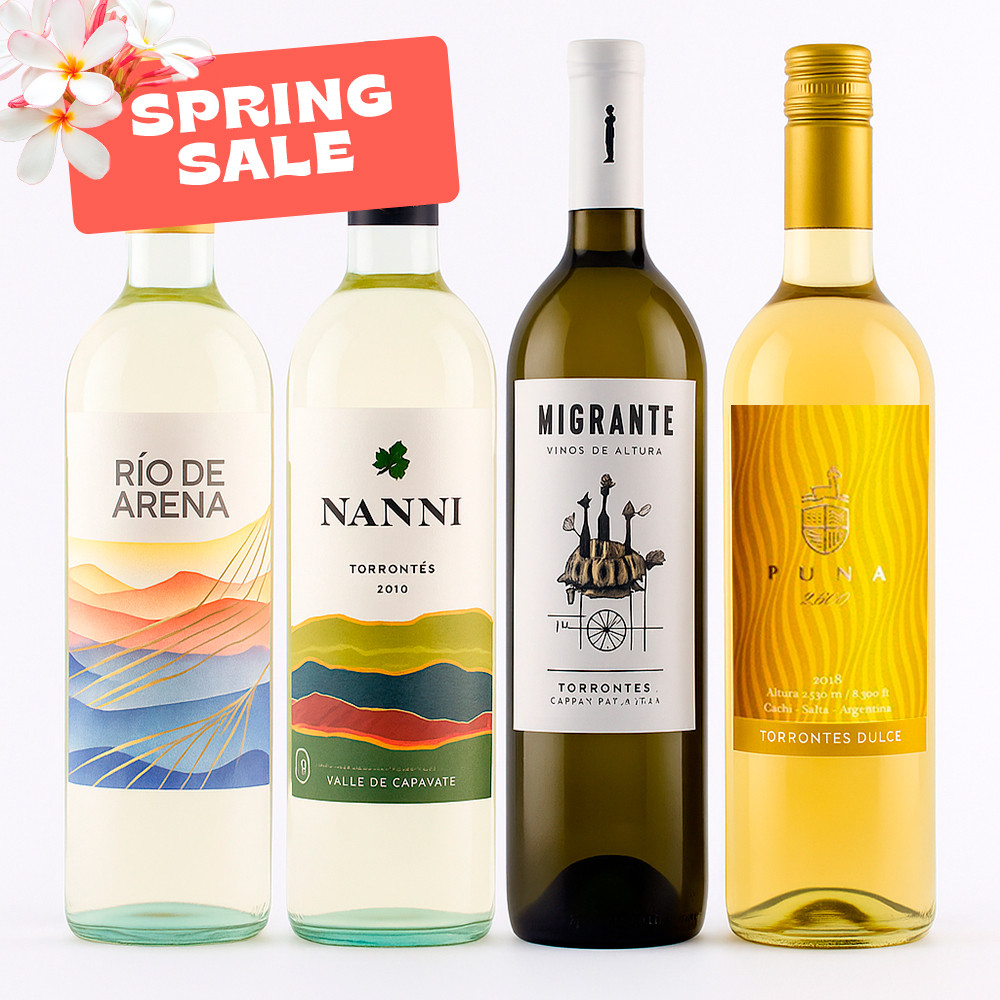 Combo de torrontes del norte 2 dulces 2 secos, Exelente opción para probar distintos blancos del norte Argentino, refrescantes, dulce y tardio